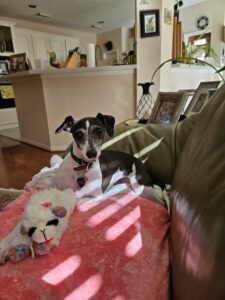 “This is Paris, my 6th Italian greyhound and 4th rescue dog. She came to live with me on Dec 14, 2023. She had already been with 4 other owners and I promised her that she had found her “furever” home with me. We enrolled in puppy school, and she was the only graduate who was invited to attend intermediate training. She passed both with nearly perfect scores!