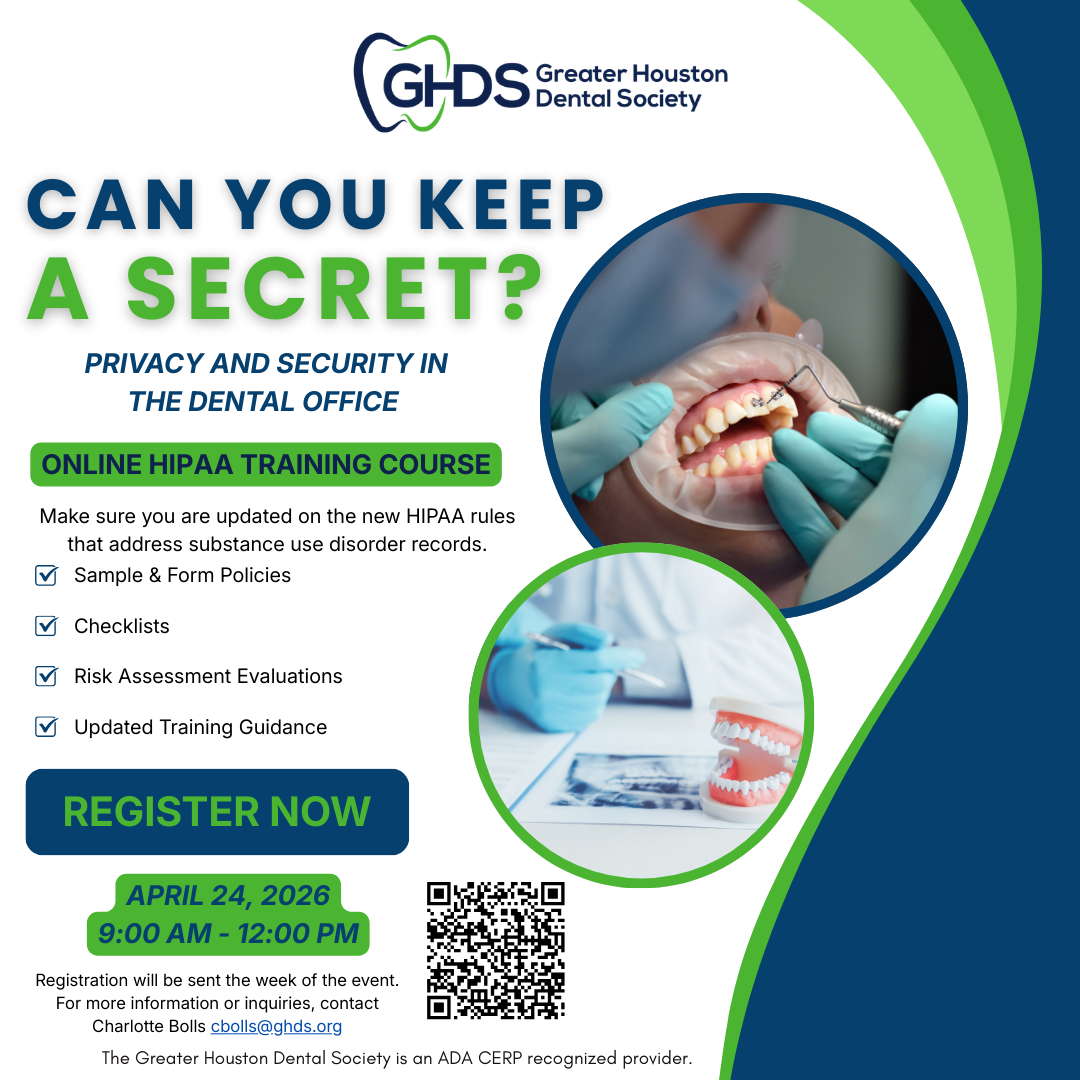 The Greater Houston Dental Society is a not-for-profit component society of the American Dental Association and the Texas Dental Association. GHDS represents over 1,700 dentists in the district. The mission of the GHDS through education, services, and advocacy supports the area’s dental profession in providing quality and ethical oral health care. Learn how to join HERE.